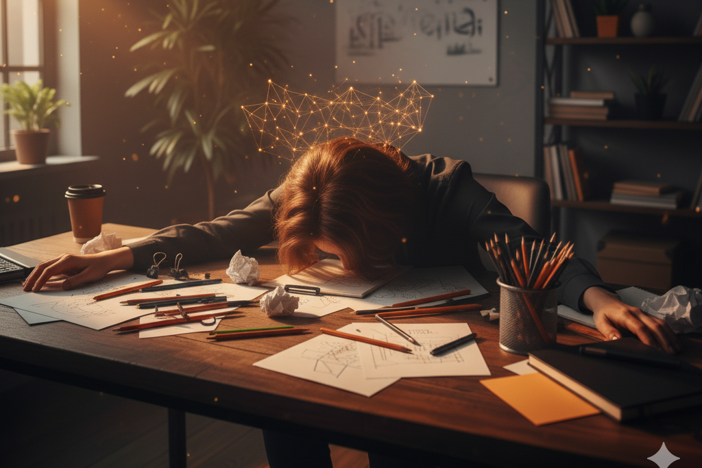 Con la mente llena de ideas, pero sin claridad para avanzar.